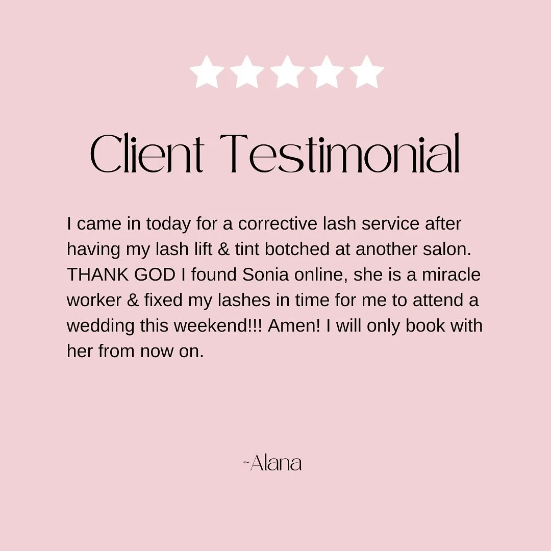 βSonia is incredible. She's very talented and treats your lashes like tiny little queens! I didn't know I had nice lashes until I got my treatments done with her! It's super important to have an experienced, caring, and detailed lash technician! This is a delicate procedure both health wise and cosmetically, but she is definitely to be trusted!! I wouldn't go to anyone else!β